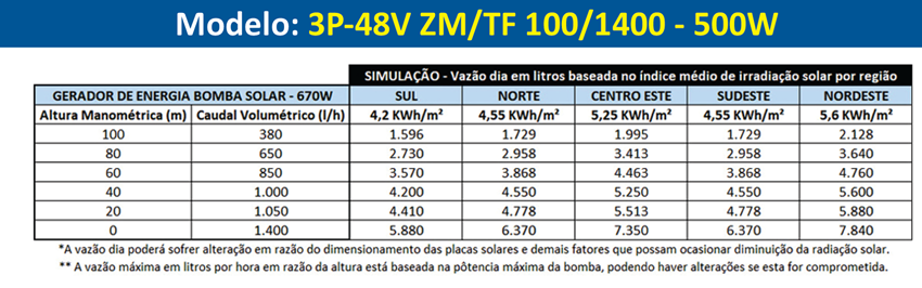 - > Gerador de Energia Bomba Solar ZM 3P-48V ZM/TF 100/1400 - 500W - 2 PAINÉIS 340W